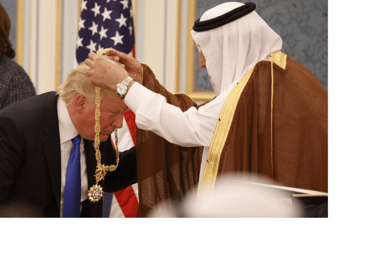 চলতি মে মাসের ২০-২১ তারিখে ছিল ট্রাম্পের রাজকীয় সৌদি আরবে সফর। এটা সেই একই ট্রাম্প, যিনি গত ২০ জানুয়ারি প্রেসিডেন্টের শপথ নিয়েই তাঁর নির্বাচনী প্রতিশ্রুতি ‘মুসলিম ব্যান’ বাস্তবায়নে ঝাঁপিয়ে পড়েছিলেন। তখন তিনি বলেছিলেন, সব মুসলমানদের আমেরিকায় প্রবেশ নিষিদ্ধ করবেন। কিন্তু বাস্তবায়ন করতে গিয়ে সেটা তাঁর মুরোদে না কুলালেও অন্তত সাত মুসলমান দেশ থেকে রওনা দিয়ে এসে আমেরিকায় প্রবেশ নিষিদ্ধ করেছিলেন তিনি। তবে তিনি তার সেই আদেশও টিকাতে পারেননি। আমেরিকান আদালতে চ্যালেঞ্জ হয়ে সেটা রদ হয়ে যায়, এবং পরপর তা দু’বার। সেই প্রেসিডেন্ট ট্রাম্প মুসলমানদের খুবই গুরুত্বপুর্ণ দেশ, সৌদি আরব সফরে গেছিলেন। তাঁকে যেতেই হয়েছিল, সবই ভাগ্যের পরিহাস! কারণ প্রেসিডেন্ট হিসাবে তার প্রথম বিদেশ সফর এই সৌদি আরবেই। আর আমেরিকান সরকারের জন্য খুবই লোভনীয় কিছু সেখানে হাজির হয়েছিল, তাই। ফলে কী ছিল এই লোভনীয় সফরে?