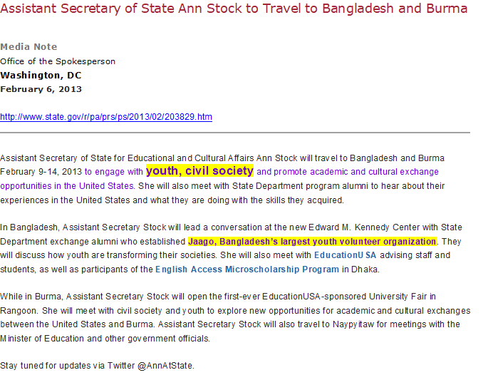 প্রথম কথা বাংলাদেশ সরকার বহুদিন থেকেই আমেরিকান সরকারকে বাংলাদেশ আরব স্প্রিং কর্মসুচী চালাতে সহযোগিতা করে আসছে। কিভাবে সেটা?